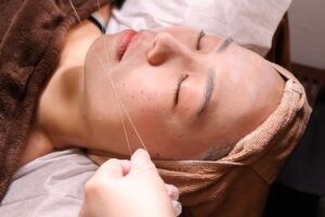美肌リンパケア糸脱毛をおこないます(全顔2周)